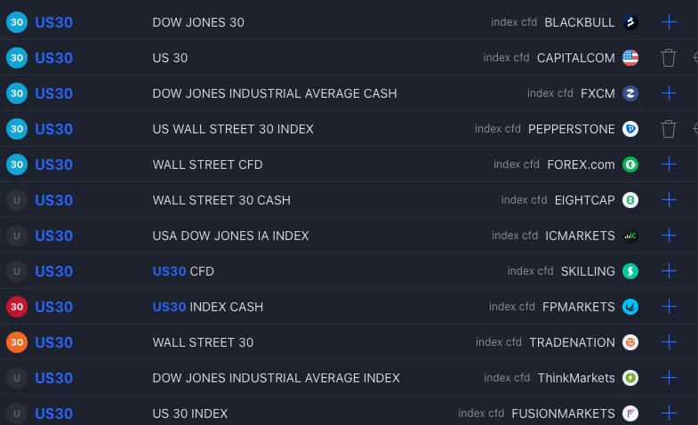 One thing I noticed, and you will too, is just how easy it is to actually find the Pepperstone assets, you just need to search for the asset – as it’s named in the Pepperstone broker dashboard (cTrader or MT5 whatever) and then simply type that in; and Pepperstone will always be one of the first brokers – this is important to note too, sometimes the other brokers on our list are slightly more difficult to find (*ahem City index *ahem).